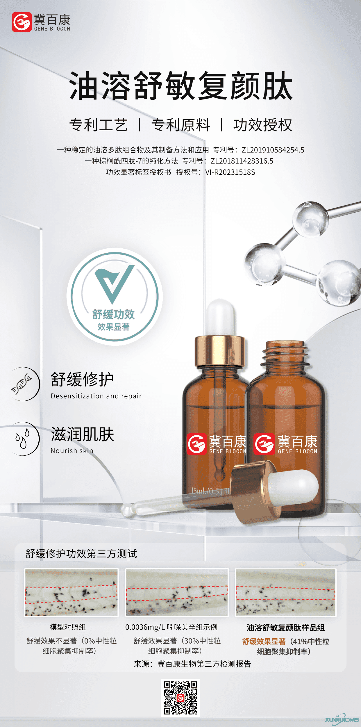 有效的測試數據是佐證“無(wú)功效,不護膚”的最有力依據。冀百康生物自主品牌Gebiotide?油溶舒敏復顏肽近日通過(guò)權威檢測機構——水中銀小魚(yú)親測魚(yú)胚胎生物技術(shù)測評,并榮獲舒緩功效顯著(zhù)評價(jià)標簽,再一次驗證了冀百康專(zhuān)利油溶工藝多肽產(chǎn)品的實(shí)力,也為品牌工程師選購油溶舒緩功效性原料提供了有力的功效支持。
